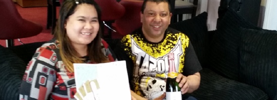 Garry and Cress Thomas were presented with a bottle of bubbly and courtesy gift vouchers after having moved to their lovely new property on Sandy Woodward Road.